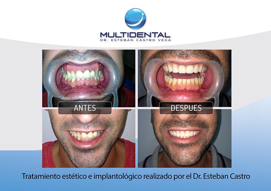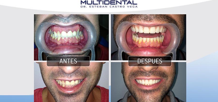 Todo se realizó en el mismo día: las extracciones, la colocación de implantes, y la colocación de la prótesis provisional superior, para que el paciente no esté sin dientes en ningún momento.